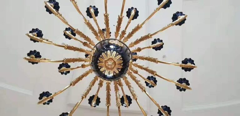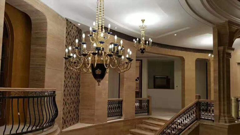 After the exhibition, under our sincere invitation, the guest was successfully received in our factory. Seeing the factory, showroom, checking the idea and so on, finally firstly finalized all the chandeliers and lamps, and then the guest gave us a new task, asked us to make a set of staircase handrail, made of copper and crystal. It took us 7 days to open the molds and after another 7 days we had a sample of the handrail. Once again, we invited the customer to fly over from India to confirm the sample, and of course the cooperation was happily concluded.